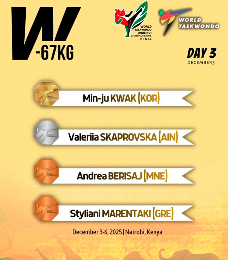 В г. Найроби (Кения) с 02 по 07 декабря 2025 года проходит первенство мира среди юниоров и юниорок до 21 года. Подмосковная Спортсменка ГБПОУ МО "УОР № 1" Скапровская Валерия в составе сборной команды России завоевала серебряную медаль турнира в весовой категории до 67 кг!